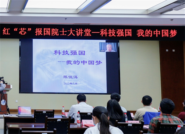 2022年5月19日下午,在学校犀浦校区综合楼148会议室,中国科学院院士、原北大校长、原国家自然科学基金会主任陈佳洱先生为广大师生奉献了一场主题为“科技强国 我的中国梦”的精彩报告,开启了红“芯”报国院士大讲堂的序幕。