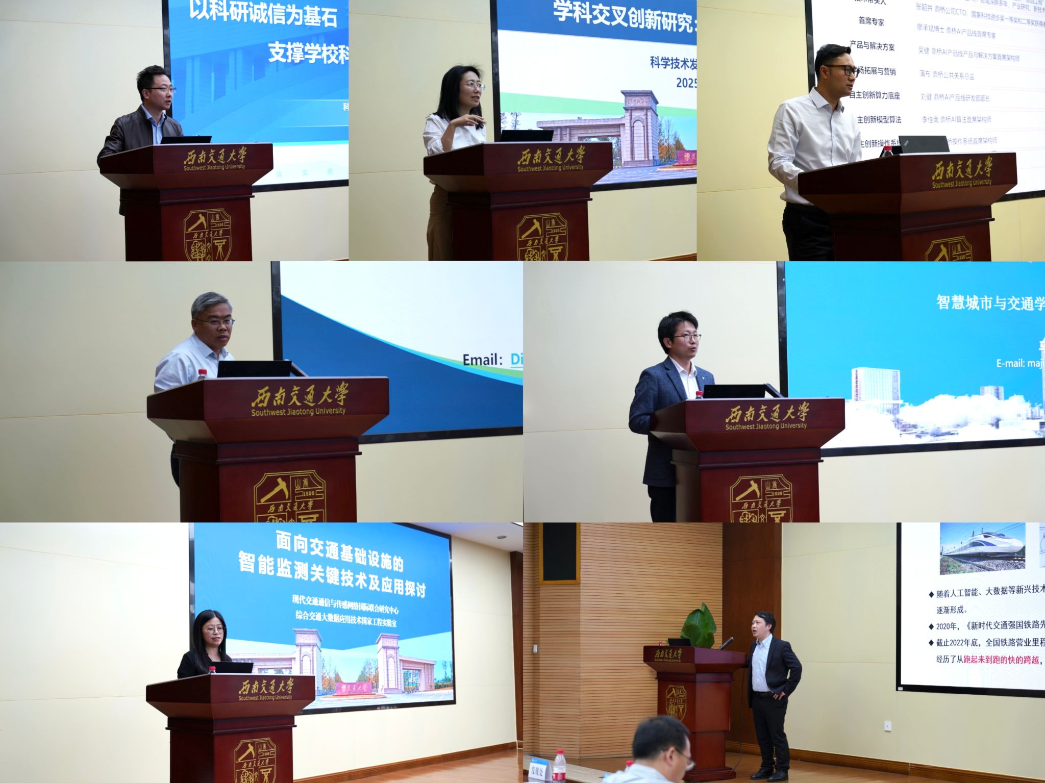 科研院副院长丁雨淋介绍了学校人工智能科技创新三年行动计划,并以轨道交通智能运维交叉创新团队为例,详细阐述了建设思路与工作安排。随后,鼎桥通信技术有限公司总工刘健介绍了机器人大脑创新中心和四足机器人在铁路智能巡检场景应用;机械学院副院长丁国富从学科交叉的角度介绍了智能制造团队的建设情况和思考建议;智慧学院副院长马剑介绍了“校-城-产”深度融合的科创范式及五个交叉团队的建设情况;电气学院教授周福林以“车网电气系统智能运维思考与实践”为题,介绍了团队建设情况;信息学院教授杨柳以“面向交通基础设施的智能监测关键技术及应用探讨”为题,介绍了学科交叉的相关经验做法,并就有组织科研、产学研用协同创新、人工智能带来的机遇与挑战、人工智能科技创新等方面进行了分享与探讨。接着,与会人员围绕有组织科研、学科交叉团队建设、产学研用协同创新、校企合作、人工智能等方面进行了深入研讨。