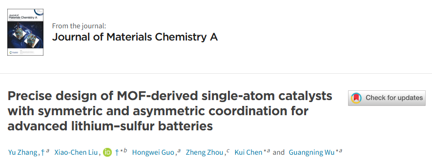 大规模电化学储能创新团队最新研究成果“Precise design of MOF-derived single-atom catalysts with symmetric and asymmetric coordination for advanced lithium-sulfur batteries”,论文第一完成单位是搜书吧