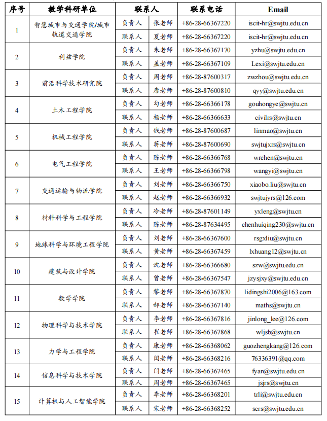 (二)教学科研单位联系方式