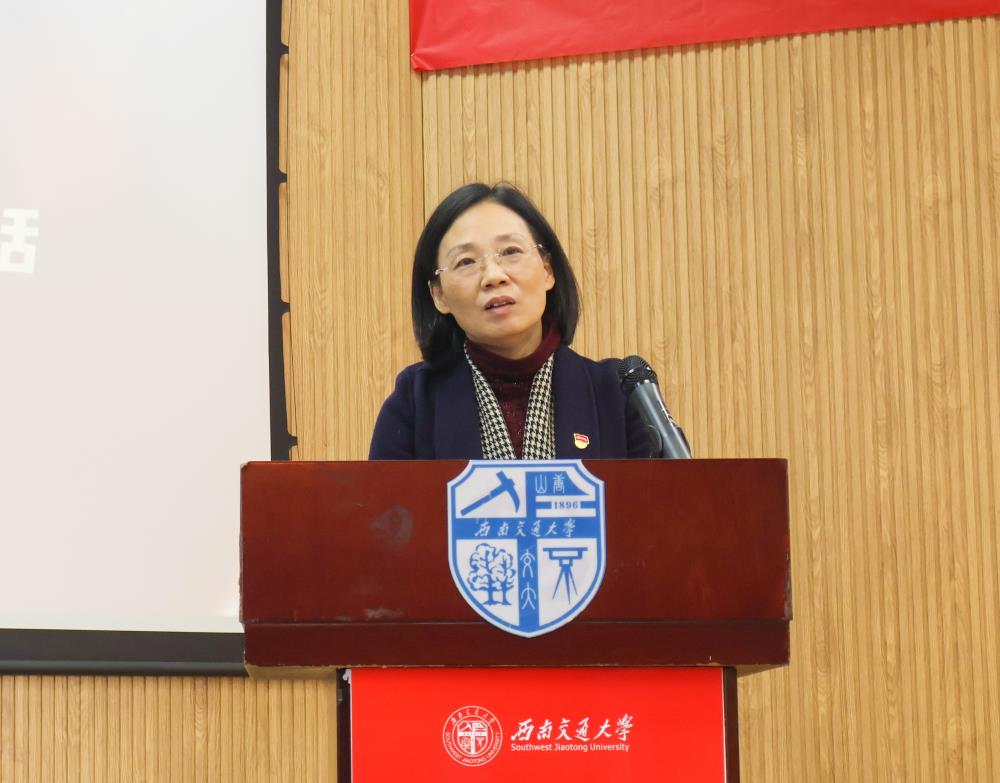 杨爱华首先热烈欢迎老师们入职西南交大,她深情回顾了学校126年以来的峥嵘历史,西南交大时刻与祖国荣辱与共,交大人永远把奉献祖国服务国家,作为不变的家国情怀。她指出,学校之所以能为国家的发展做出积极贡献,得益于有一支坚守双严传统的优秀教师队伍。选择成为一名光荣的人民教师,要时刻牢记肩上的责任与担当。习近平总书记在党的二十大报告中强调,教育、科技、人才是全面建设社会主义现代化国家的基础性、战略性支撑。这一论述强调了教育在其中的基础性力量,更表明了教师的责任重大、使命光荣。对于如何成为一名优秀的教师,杨爱华从加强政治修养、道德修养、专业修养、人文修养四个方面对新入职教师提出明确要求,希望各位青年才俊继承交大优良治学传统,共创交大美好未来。