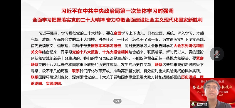 党委学生工作部副部长李毅首先对来自两所高校的五位青年讲师的精彩表现予以了充分肯定,他强调学习宣传贯彻党的二十大精神是当前和今后一个时期全党全国的首要政治任务,鼓励交大学子积极学习党的二十大精神,把理论学习转化为新征程上的奋斗实践,在科技创新中贡献交大力量,不负时代,踔厉奋发,勇毅前行。