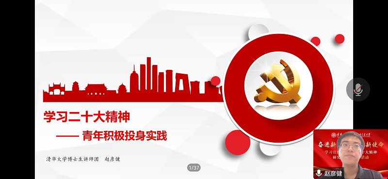 研究生“红路”理论学讲团联合清华大学博士生讲师团成功开展以“奋进新征程,勇担新使命”为主题的学习党的二十大精神两校研究生联学联讲活动。各学院、党支部千余名学生通过腾讯会议、QQ课堂等方式共同参与本次活动。