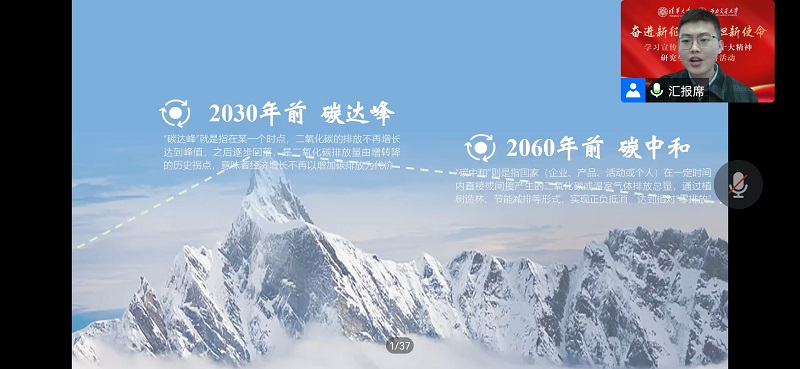 研究生“红路”理论学讲团成员、交通运输学院2021级硕士生乔宇以《不负青山,赢向未来》为题进行分享。他阐述了“绿水青山就是金山银山”的理念。他以自己在交大的生活为引入,从成都的生态环境改善延伸到过去十年间党和国家在生态文明建设事业上取得的非凡成就,指出我国正在大踏步走在实现人与自然和谐共生的中国式现代化道路上。