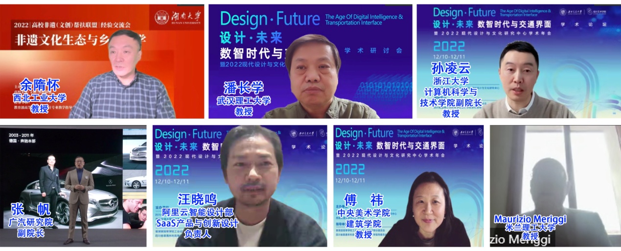 10日下午的主题论坛由支锦亦教授和李芳宇教授共同主持。教育部高等教育工业设计教指委副主任、西北工业大学余隋怀教授的报告主题是《设计中的文化传承》,通过对我国各类经典的古代文物案例的设计要素分析,从设计中的文化传承与创新视角给大家带来了许多启发。全国艺术专业学位研究生教育指导委员会委员,武汉理工大学潘长学教授的报告主题是《综合性理工大学设计创新与产教融合实践》,以武汉理工大学在高端船舶和海洋工程中的实践为例解读了未来中国的设计发展。浙江大学计算机科学与技术学院副院长孙凌云教授的报告主题是《智能增强时代的设计》,阐述了人工智能在设计的洞察力、协同力和敏捷力等方面的影响,以及浙江大学在智能设计方面的探索、思考和实践成果。广汽研究院副院长张帆的报告主题是《文化映射•自在出行——广汽设计情感化出行载具设计探索》,诠释了广汽集团在数智时代如何注重文化感知,分享了文化映射在设计创新上的应用案例。阿里云智能设计部SaaS产品与创新设计负责人汪晓鸣先生的报告主题是《数字化转型中的数据搭建与数字孪生》,通过介绍数字技术在城市交通以及智慧管理效率上的创新应用案例,指出在交叉学科不断涌现的当下,传统设计师更需要拓展自身技术领域,拥抱数字化时代发展。中央美术学院傅祎教授的报告主题是《关于“环境设计”的话语研究》,通过对“环境艺术设计”概念的深刻剖析,提出了用结构主义方法论探索专业自治和学科的可持续发展的深刻思考。米兰理工大学MaurizioMeriggi教授的报告主题是《老火车站和城市铁路网的当代发展与站前广场问题——以米兰为例》,以米兰中央火车站区域的城市发展为例,以动态的方式展现了不同历史发展时期围绕米兰中央火车站产生的设计思潮及其对周边区域城市更新的影响。