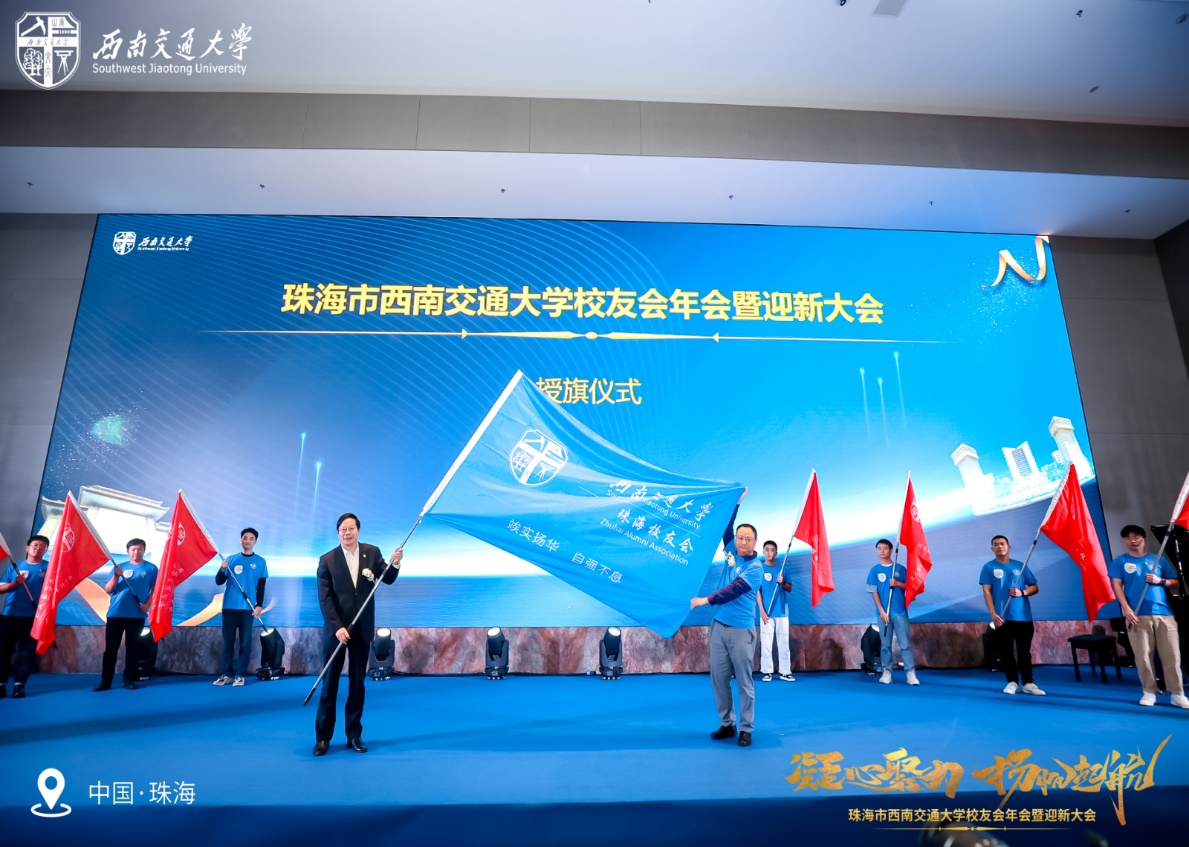 校友会授旗,颁发荣誉会长、监事长、秘书长、理事会聘任书,并发表讲话。沈火明对珠海校友会的成立和发展表示祝贺,对广大校友和社会各界人士对学校的关心和支持表示衷心感谢。他介绍了学校的最新发展动态,强调了校友、校友会在学校发展中的重要作用,希望校友们一如既往地关心学校、支持学校、帮助学校,为学校发展添砖加瓦,贡献智慧和力量。他说,母校殷切希望珠海校友会继续团结协作,不断壮大,在助力珠海高速发展中贡献更多交大智慧和力量;希望珠海校友会更多更好关注年轻校友,助力他们成长发展。