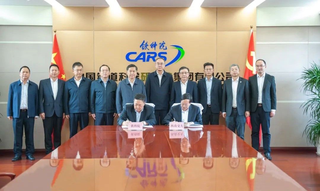 与中国铁道科学研究院集团有限公司(以下简称“铁科院”)在北京签署战略合作框架协议。中国铁道科学研究院集团有限公司党委书记、董事长蒋辉、总经理李学峰、总工程师赵有明,搜书吧