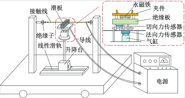 电气工程学院、成都国佳电气工程有限公司的研究人员,搭建了弓网滑动电接触模拟实验平台,研究了外加磁场对载流摩擦磨损的影响作用。具体表现为通过改变磁感应强度、磁场极性,研究了不同参数对弓网接触副摩擦系数与磨损率、电接触特性、表面形貌及接触温升等的影响规律,并对磁场影响的机理进行了分析。