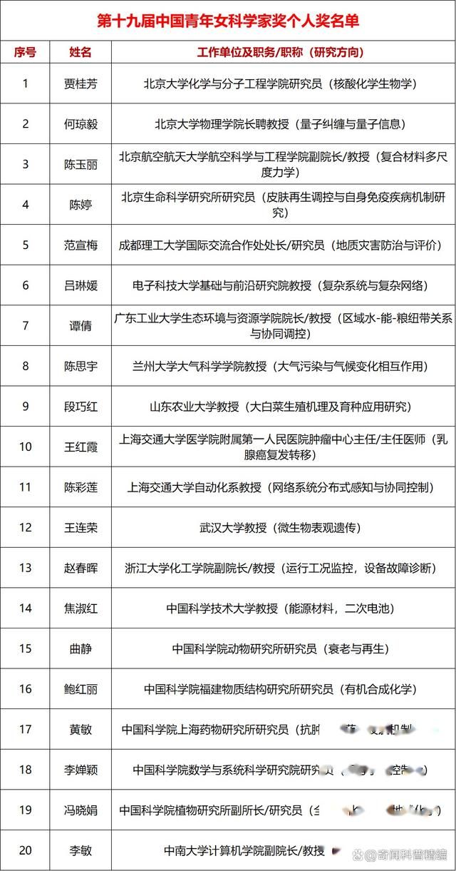 作为中国科学界的最高荣誉之一,中国青年女科学家奖有着极高的含金量,那么这二十人都是谁?