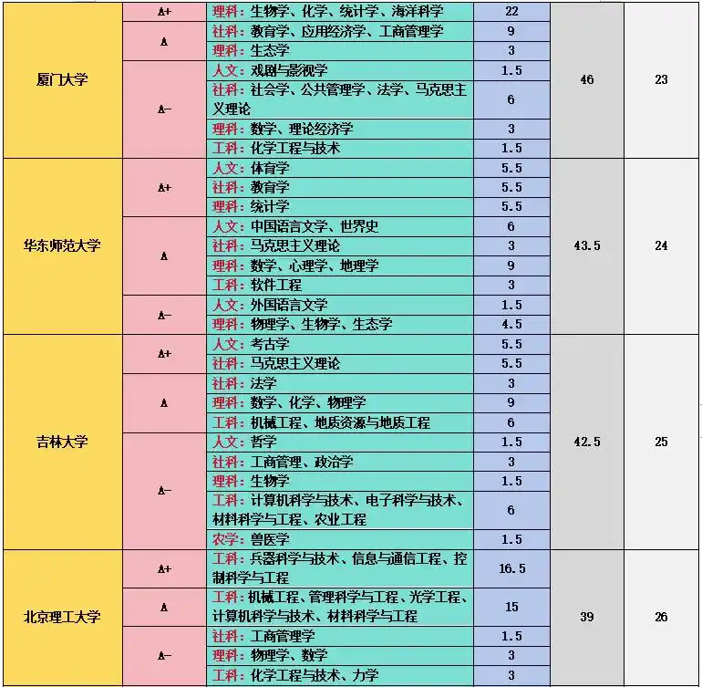 上海交通大学在工科和医学领域成绩斐然,11 个 A + 学科中,管理科学与工程、计算机科学与技术、机械工程、材料科学与技术等工科专业实力强劲,临床医学、基础医学、口腔医学等医学专业也表现出色,其医学教育和科研水平在国内名列前茅 。中国科学技术大学在理科领域优势突出,数学、物理学、化学、生物学、科学技术史、天文学、地球物理学、核科学与技术等 9 个学科获得 A+,在基础科学研究方面取得了众多突破性成果,培养了大批优秀的科研人才 。中国人民大学在人文社科领域独占鳌头,中国语言文学、理论经济学、应用经济学、法学、马克思主义理论、社会学、新闻传播学、工商管理、公共管理、农林经济管理、统计学等 11 个学科获评 A+,是人文社科领域的学术重镇 。