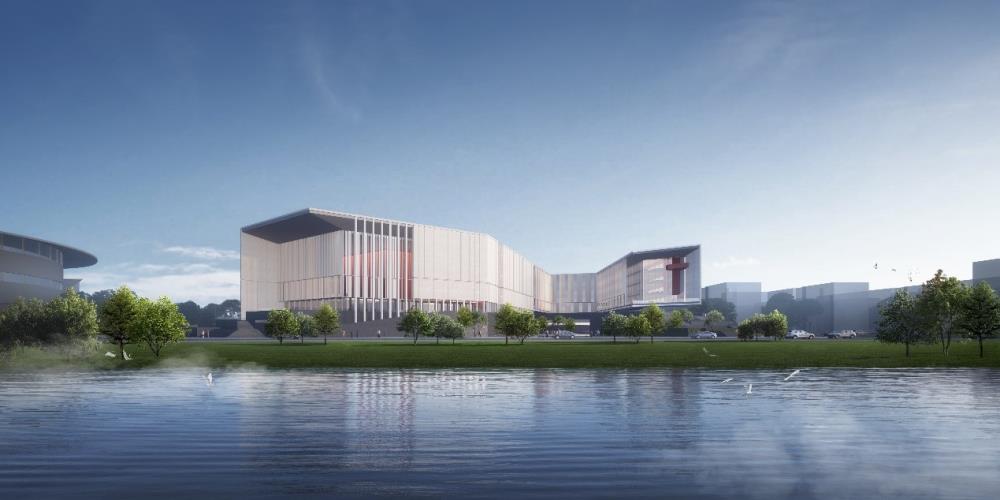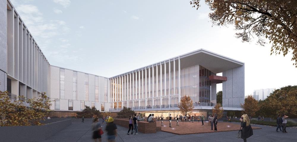 “犀浦校区大学生创新创业教育中心” 项目位于校园中轴线核心区域,与体育馆、图书馆在犀湖两岸环抱而立,总建筑面积约30000平方米,总投资22000万元,设计单位为中国建筑西南设计研究院有限公司。目前,建筑方案已经基本确定,建筑造型提取五线谱中“音符”的意向并加以抽象,以带状连贯的形体漂浮在基座之上,象征着学校铿锵有力、蓬勃向上的科研精神,助力交大谱写校园创新发展的豪迈乐章。