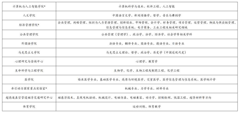 三、引聘学院及学科专业(*为交通运输一流学科建设支持学院)