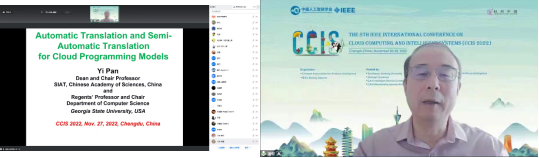 美国医学与生物工程院院士、深圳理工大学(筹)计算机科学与控制工程学院院长潘毅教授带来了题为“Automatic and Semi-Automatic Translation for Cloud Programming Models”的大会报告。报告介绍了人工智能发展中云计算相关的关键技术和研究领域。阐述了自然语言处理等方向在云计算部署和加速应用的案例,表达了云计算在多个领域的适用性,介绍了云计算方法具体的加速优化方法等。潘毅教授讨论了云计算未来的发展方向和挑战。