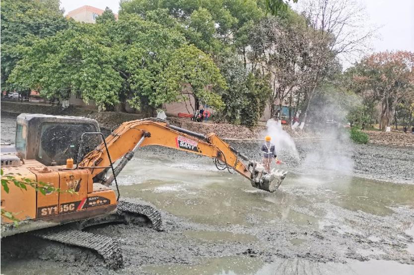 物业中心协同维水运中心利用寒假假期对九里校区镜湖进行改造,开展清理淤泥、疏通给排水管道、治理镜湖排污、泼洒生石灰消毒消杀等工作,使镜湖水质得到极大提升,为荷花种植提供坚实基础。改造工作得到了师生的广泛关注和普遍赞誉,相信到夏日荷花盛开时,必将为九里校区勾勒出一幅校园美丽画卷。