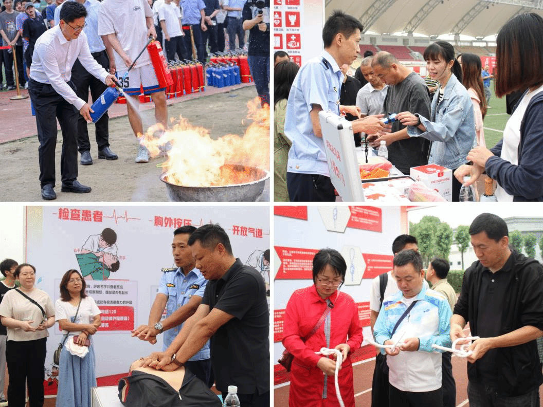 本次消防安全警示教育展区分为安全绳体验区、交通出行安全宣讲区、急救科普区和消防器材展示及灭火毯实操区,设有烟雾逃生体验屋、手持灭火器体验等项目,配有专业人员进行现场讲解与教学,为师生带来沉浸式的消防体验。