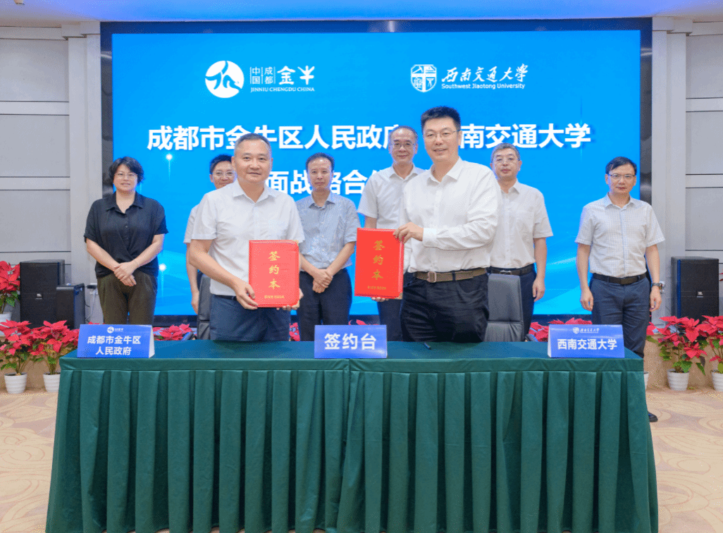 进行了全面战略合作协议签约。根据协议内容,双方将着力探索“学科+产业”的创新模式,共同打造环交大校地共享文化园、共建科技成果就地转化一体化平台、共建产教融合产业人才发展基地等项目,促进科研成果就地就近转化,持续深化产学研合作平台建设、高层次人才培养和教育培训等领域的合作,加快聚集人才、技术、资金、数据等创新要素,建强环高校知识经济圈,推动金牛区“天府成都北城新中心”和西南交大“双一流”建设。