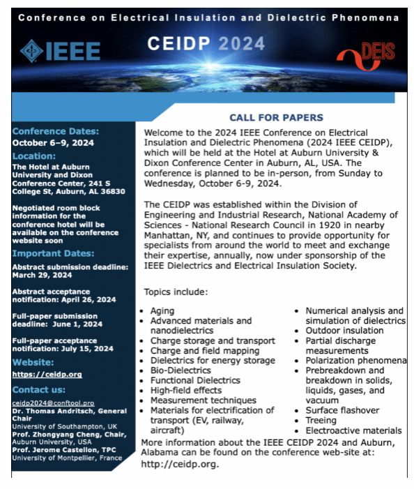 1. 2024 IEEE Conference on Electrical Insulation and Dielectric Phenomena (CEIDP)